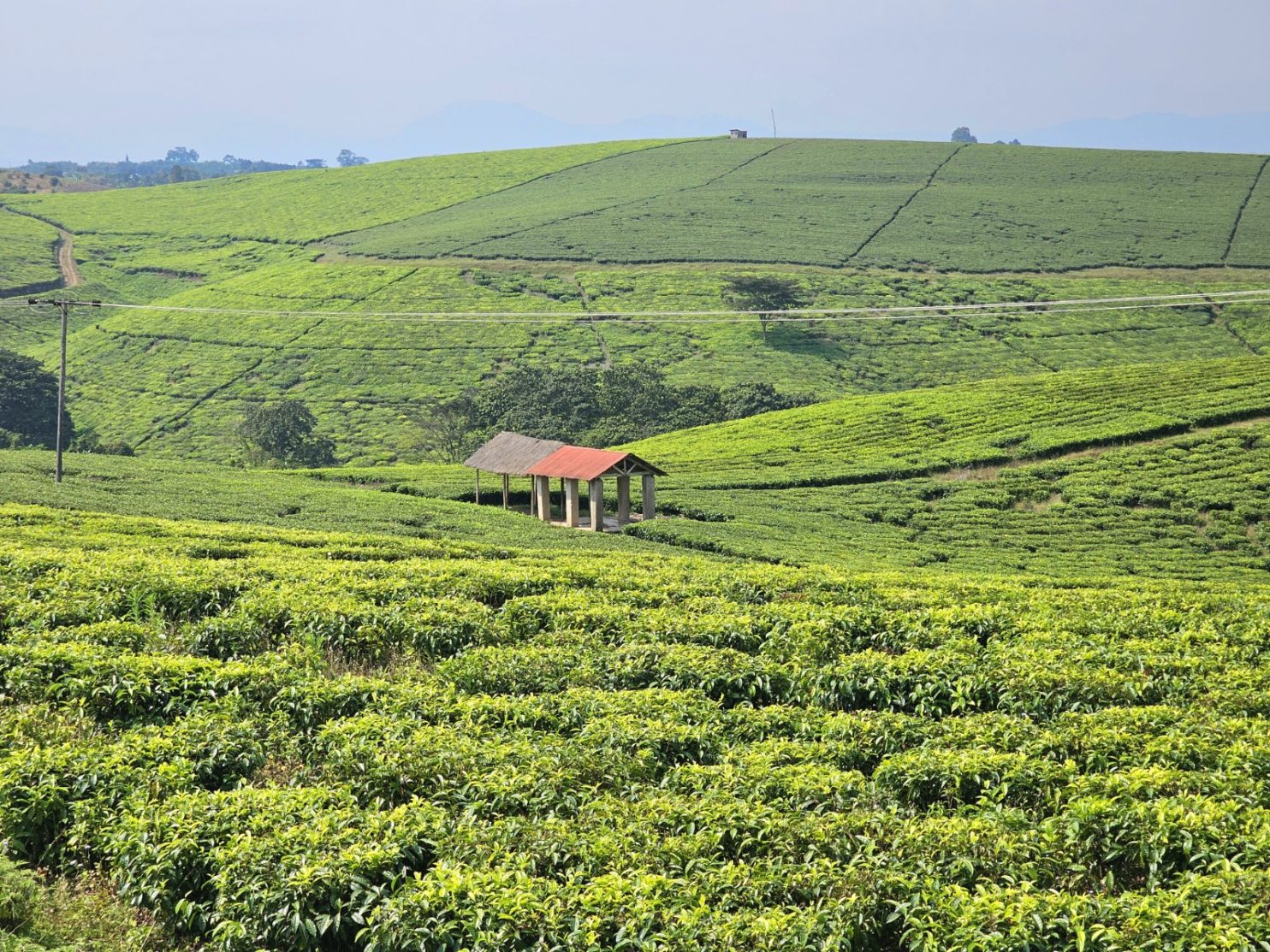 Towards the top of this long 500 metre climb I came across another tea estate. This one was called the Kyimbila Estate and it was managed by the Wakulima Tea Company. It was in complete contrast to the previous one and the fields were bright green with new growth on the well ordered bushes which were all the same size. I think the Wakulima Tea Company was in it for the long term and were probably fertilizing their fields to increase their yield and profit. Their tea factory was near Tukuyu and looked relatively small compared to the Sri Lanka ones. There was no one in the fields at all but then it was a Saturday and perhaps this was a workers day off.